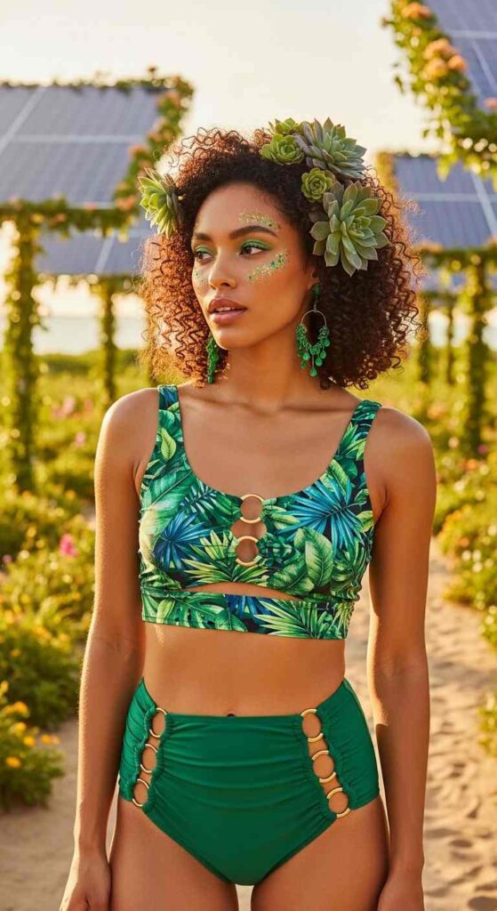 Why It Works: In an era of climate anxiety, the Solarpunk aesthetic offers something radical and healing — optimism. It says the future can be green, bright, and beautiful. And so can your swimwear.