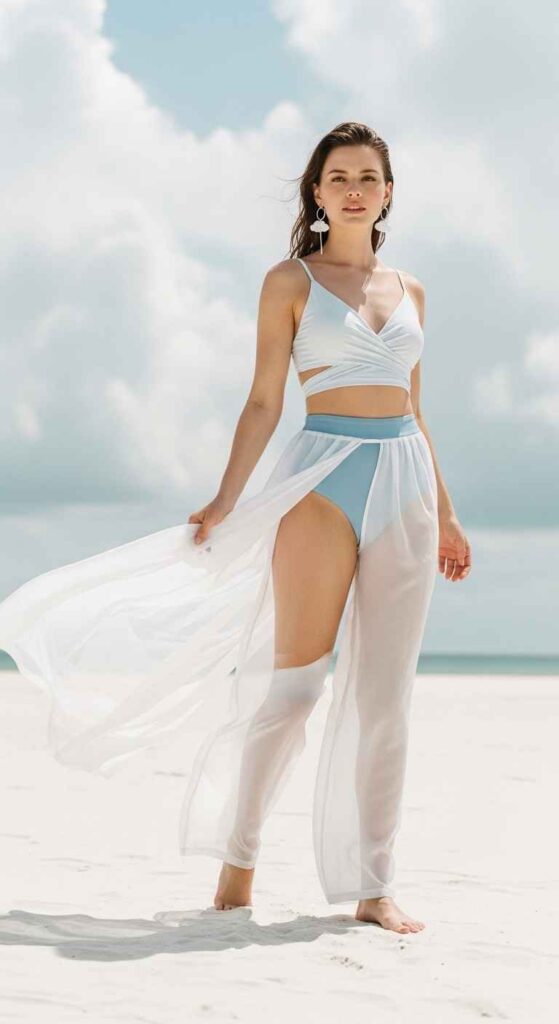Why It Works: The Nordic Frost aesthetic brings a refreshing visual coolness to beach dressing that feels genuinely original — most beach palettes lean warm, making this icy cool look completely distinctive.