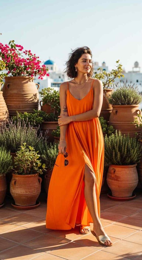 A long maxi dress with a side slit is the ultimate easy summer outfit. It’s comfortable, breathable, and the side slit adds just the right amount of flirtiness. Choose a vibrant color or bold pattern to make an impression.