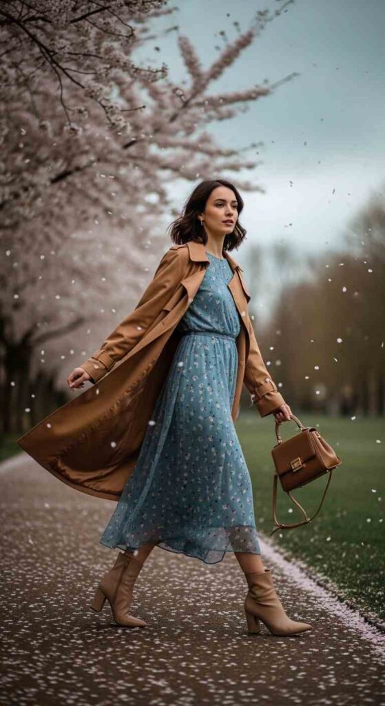 A lightweight trench coat is the ultimate spring layering piece. Throw it over a delicate floral dress for that effortlessly sophisticated look that protects you from the spring chill while keeping you incredibly stylish.