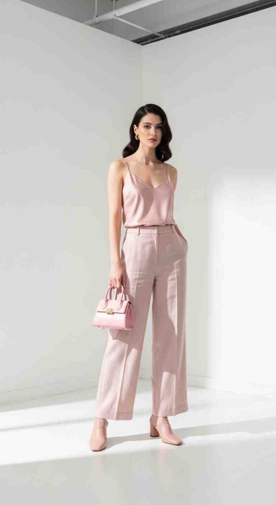 Styling Tip: Mix textures within the same color family — a satin top with linen trousers in the same pastel tone adds visual depth without breaking the palette.