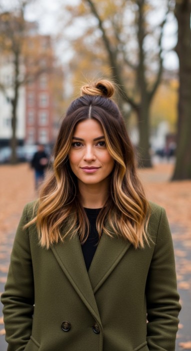 Why It’s Fashion-Forward: This 2026 trend blends warm honey with subtle copper undertones in a seamless balayage placement. The fusion creates a multidimensional, autumnal glow that’s rich without being heavy, offering a fresh alternative to traditional blonde while maintaining brightness and fashion relevance.