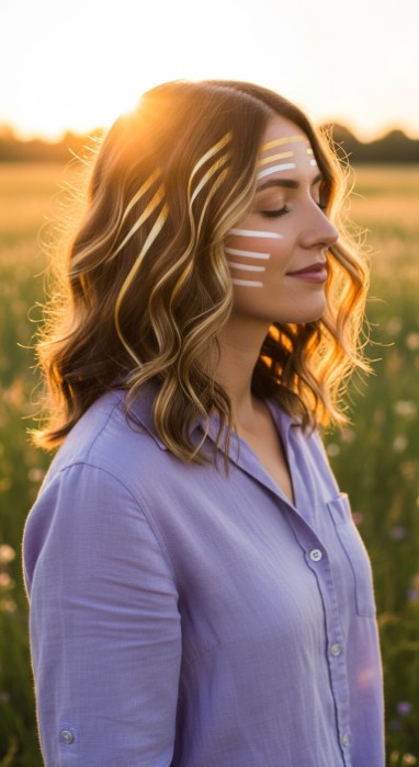 Why It’s Fashion-Forward: Hand-painted in sweeping, diagonal ribbons across the hair’s surface, this technique mimics how sunlight naturally strikes strands. The ribbons are concentrated on the outer layers, creating a halo effect that glows in natural light and fades gracefully as hair grows.