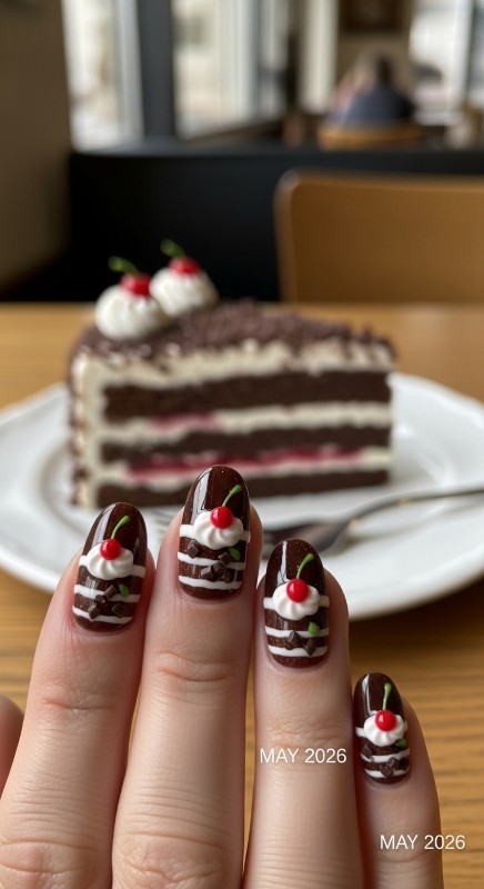 Why We Love It: Schwarzwälder Kirschtorte (Black Forest Cake) is Germany’s most famous dessert! This delicious-looking design features chocolate, cherries, and cream in nail art form. It’s indulgent, playful, and sweet—perfect for dessert lovers and foodies.