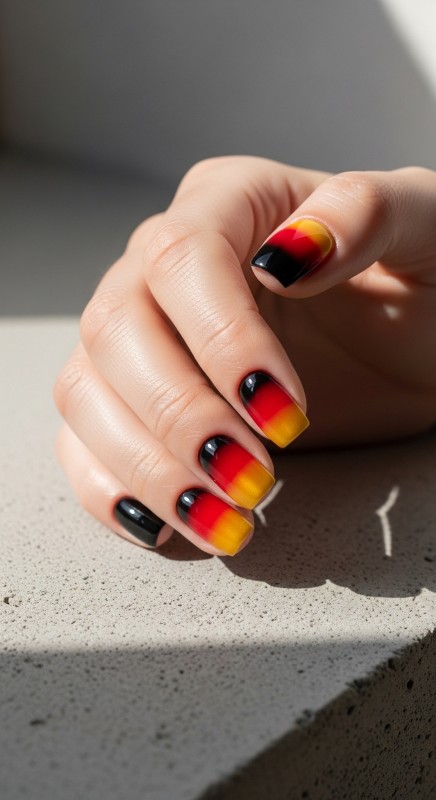 Why We Love It: This sophisticated take on the German flag uses gradient technique to soften the bold colors into something wearable and modern. The smooth transition shows technical skill while maintaining subtlety. It’s patriotic without being obvious—perfect for everyday wear in May 2026.