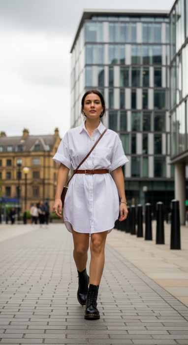 7. Oversized Shirt Dress with Belt and Doc Martens