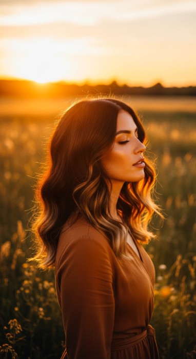 21. Dark Brunette with Golden Hour Glow Technique