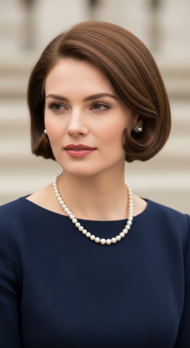 Why It’s Elegant: This contemporary bob features a dramatic angle—shorter in back, gradually longer in front—creating a sleek, elongating effect. The long front pieces can be styled to frame the face or tucked behind ears for versatility. The angled cut is both modern and timeless when executed with precision.