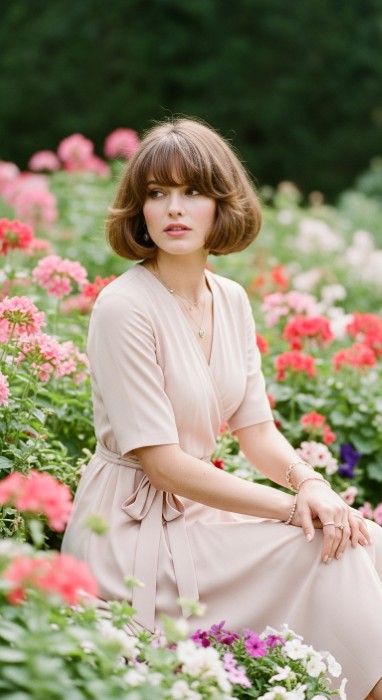 Why It’s Elegant: This bold, architectural cut features a blunt chin-length perimeter with precise straight-across bangs. The clean lines create a powerful, confident silhouette that’s unexpectedly elegant. When styled sleek, it’s a striking statement; with soft texture, it’s romantically modern.