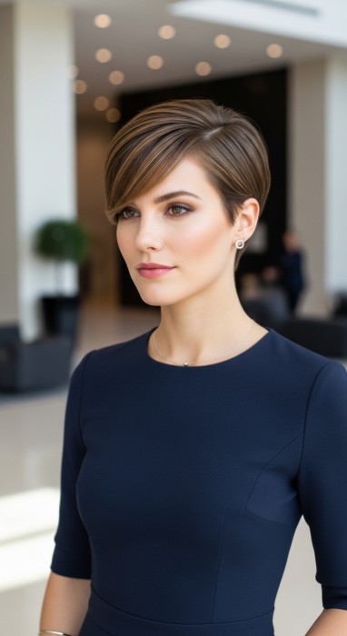 2. Polished Pixie with Side-Swept Bangs