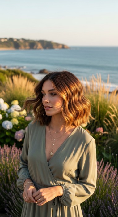 Why It’s Elegant: This relaxed yet refined bob features soft waves and textured ends that create a lived-in, beachy finish. The cut is designed to look better as it grows out, with layers that enhance natural movement. It’s effortless elegance that embraces imperfection beautifully.