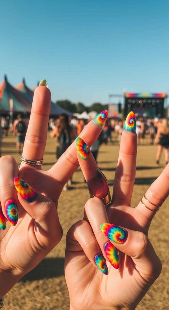 Colorful tie-dye effects bring ’70s nostalgia and festival vibes. This technique creates psychedelic, groovy patterns.