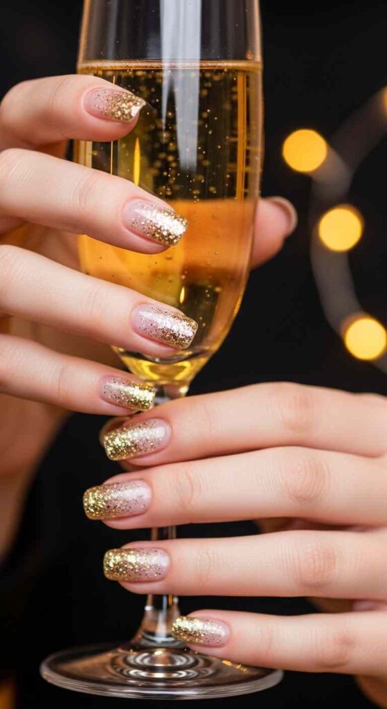 Glitter density increasing toward nail tips creates sparkly gradients. This technique brings customizable shimmer and dimension.
